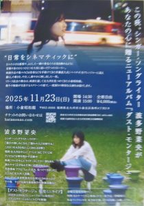 本日10月21日の放送は、シンガーソングライターの波多野菜央さんをお迎えしました。波多野菜央さんは4枚目のCD「ダスト・モンタージュ」をリリースしたばかりですが、過去3枚のCDのトータル売り上げは、ファンファン取り扱いのインディーズCDの最高売り上げを更新中です!今回のCDも直筆サイン入りポストカード付きで、絶賛発売中です!番組内ではご自身のギター弾き語りで、CD「ダスト・モンタージュ」収録曲を2曲と、僕のピアノに乗せて松田聖子さんのカバー「スイート・メモリーズ」を、スタジオで歌っていただきました。当日の放送はYOU TUBEでもアーカイヴが残っていますので、ご覧ください。なお波多野菜央さんは、11月23日15時から北九州市の小倉昭和館にて「小倉昭和館ライブ~ダスト・モンタージュ」を開催します。お近くの方はどうぞお越しください!