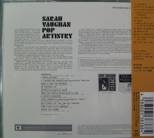SARAH VAUGHAN / POP ARTISTRY OF ~